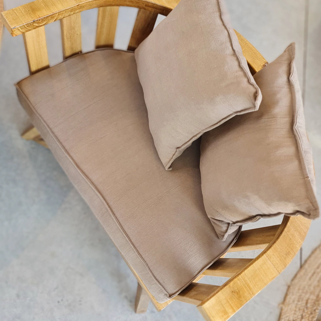 Personalización: Incluye almohadones en tussor, disponibles en color a elección, permitiéndote crear un espacio único y a tu medida.